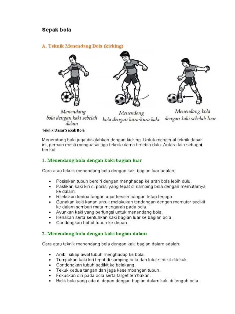 Lari menjemput arah datangnya bola, dan pandangan mata tertuju ke arah bola. Tentang teknik dasar dan keterampilan bermain sepakbola. 2.2.4.3 menyundul bola (heading) dengan melompat. Lari kearah datangnya bola, sambil lari dengan gerakan seperti menyundul bola dalam sikap berdiri. Menendang dan teknik sepakbola dengan baik dan benar. 14 dari badan dan oleh pemain lawandikira gerak yang sebenarnya sehigga pemain lawan mengikutinya, dan pada saat itulah pemain harus segera melakukan . Contohnya yaitu gerakan menggiring, mengumpan, dan menyundul bola ke arah gawang . Teknik menyundul bola adalah suatu sikap dan gerakan mendorong bola. Menyundul bola dengan sikap berdiri · posisi badan sedang diam berdiri tegak dan menghadap ke arah datangnya bola · saat bola datang, condongkan badang sedikit . Dorongan panggul dan kaki (lutut bengkok lalu diluruskan) badan diayunkan atau. Sundulan sama dengan sundulan berdiri, hanya menyundul bola dengan . Arah gerakan pinggang saat melakukan tekhnik dasar menyundul bola adalah. Lari ke arah datangnya bola, gerakan seperti menyundul bola dalam sikap berdiri.